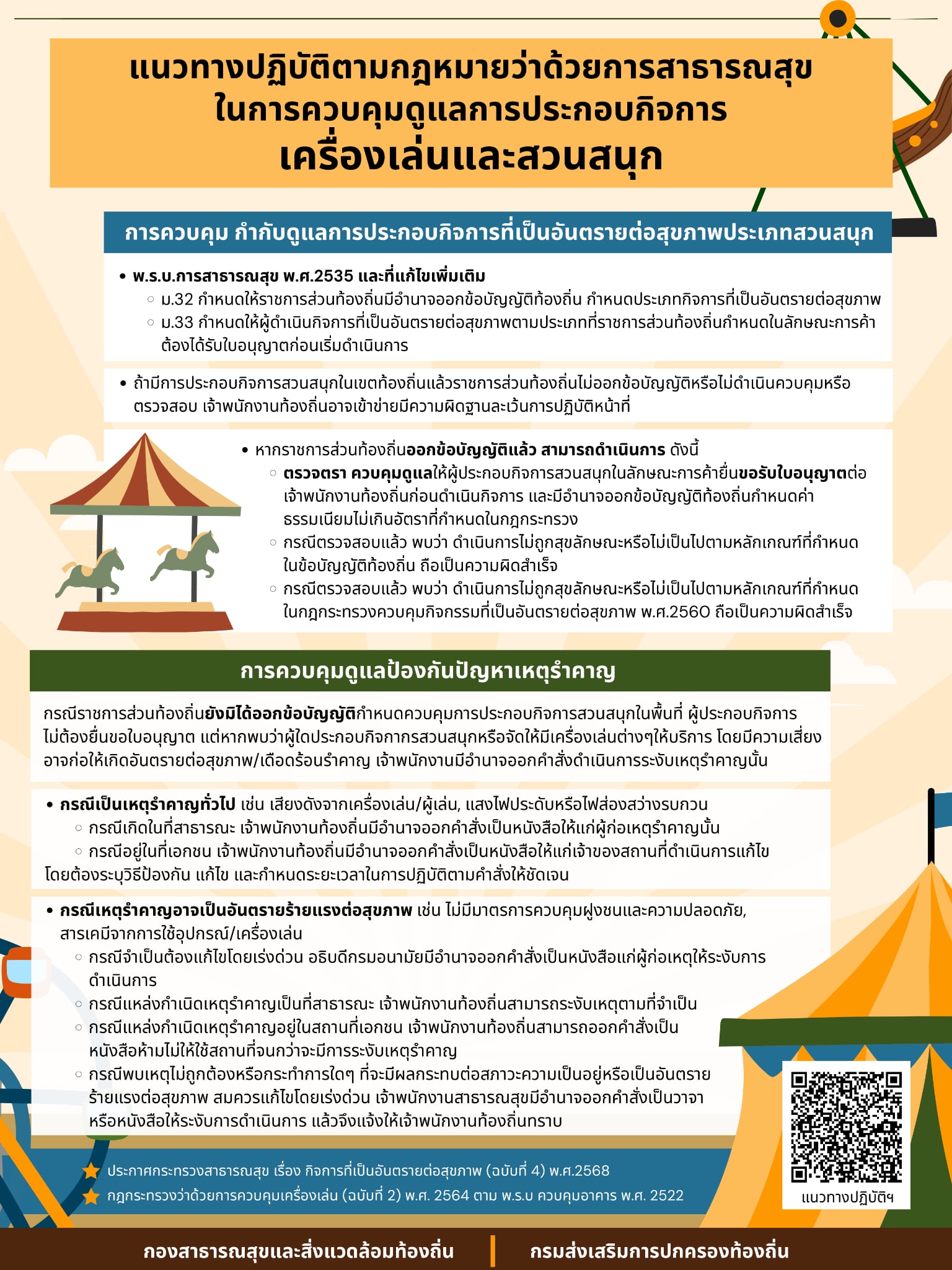 ประชาสัมพันธ์ แนวทางปฏิบัติตามกฎหมายว่าด้วยการสาธารณสุขในการควบคุมดูแลการประกอบกิจการ เครื่องเล่นและสวนสนุก